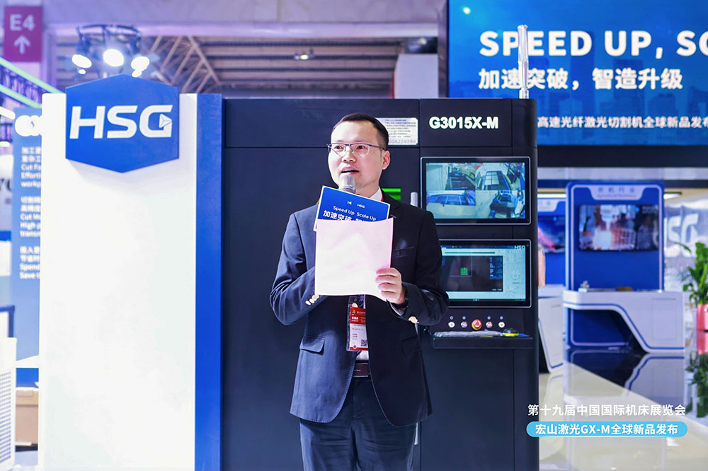 中國機床工具工業(yè)協(xié)會執(zhí)行副理事長王黎明在致辭中表示:“宏山激光推出的G3015X-M高速光纖激光切割機,體現(xiàn)了中國激光裝備在性能突破與智能化方向的強勁創(chuàng)新力。其持續(xù)推動綠色制造與高質量發(fā)展方向的技術成果,不僅滿足了全球客戶對高效裝備的迫切需求,更進一步提升了中國品牌在國際市場上的影響力與話語權。”