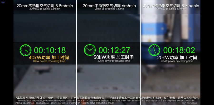 *此文所有對(duì)比,均是與宏山激光30KW、20KW相比較。